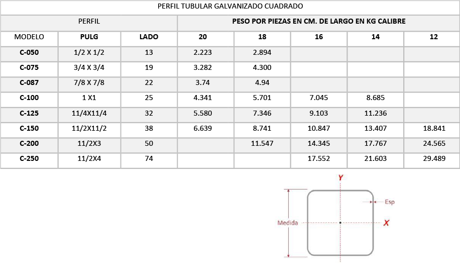 Perfil Tubular cuadrado galvanizado