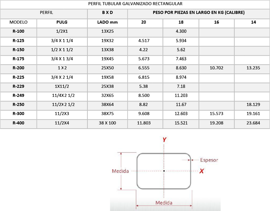 Perfil Tubular rectangular galvanizado