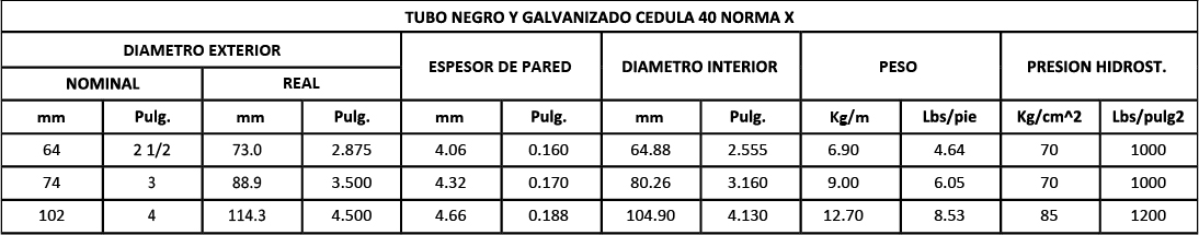 Tubo negro galvanizado CED 40